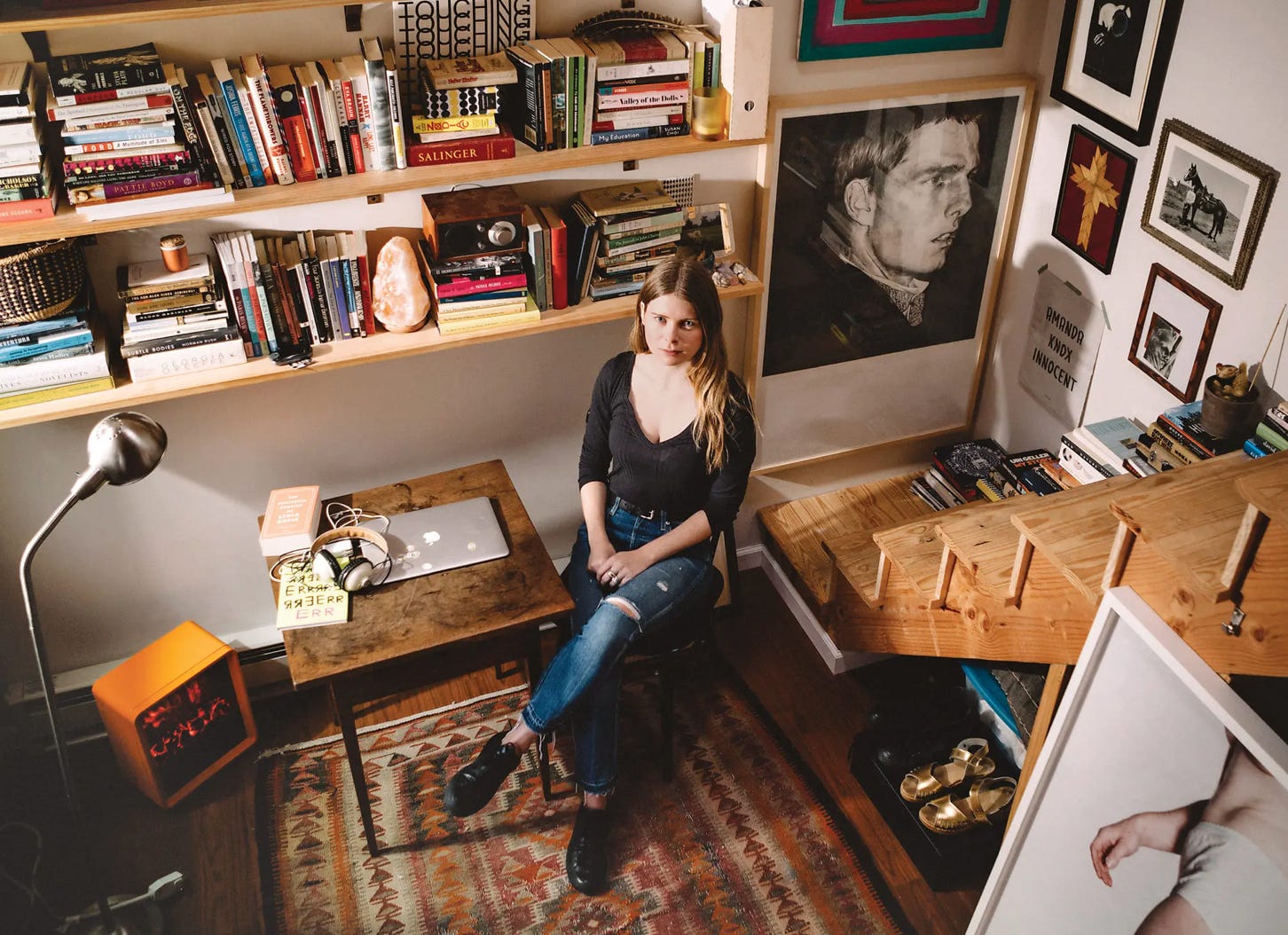 I have a thing for photos of writer’s desks. I collect them like amulets, which might deliver me into a writerly career of my own, in which I too might have enormous bookcases and ashtray-lined desks and velvet armchairs.